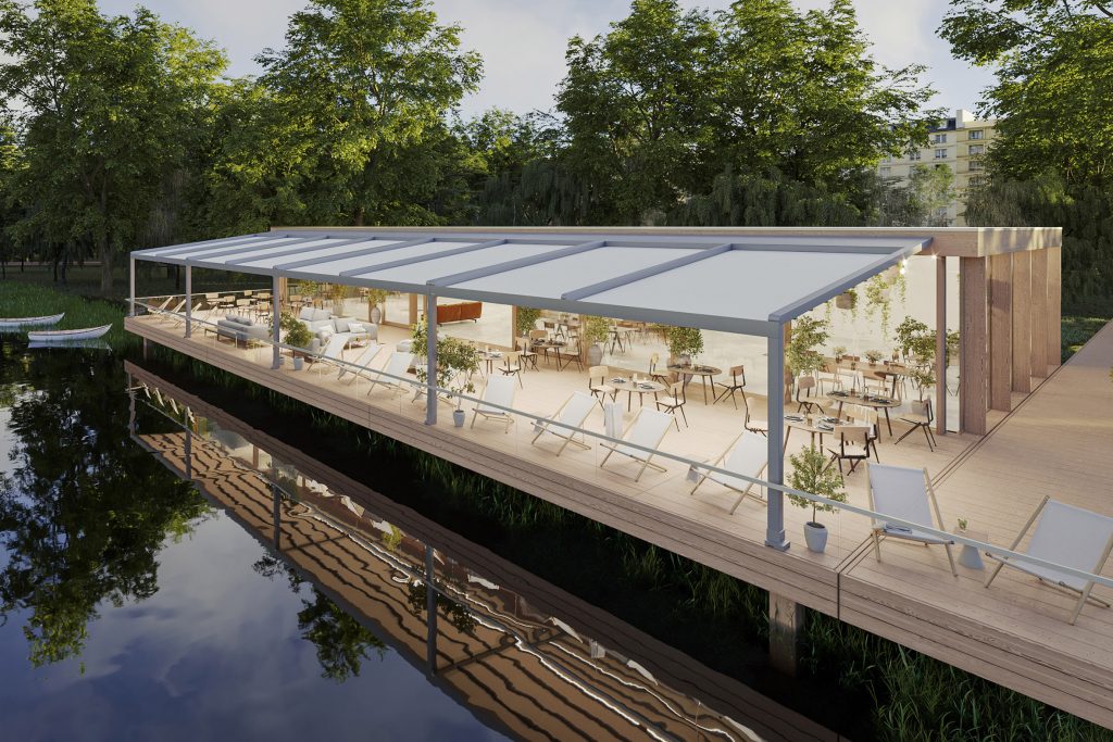 Die designprämierte Pergola Stretch von Markilux deckt Flächen bis zu 175 qm ab.