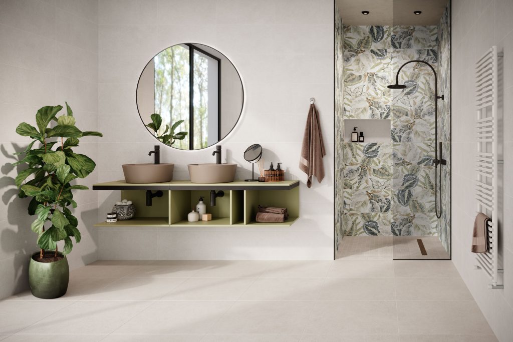 Die Fliesenkollektion LOUNGE von Agrob Buchtal sorgt für einen geheimnisvollen Hauch von Regenwald.