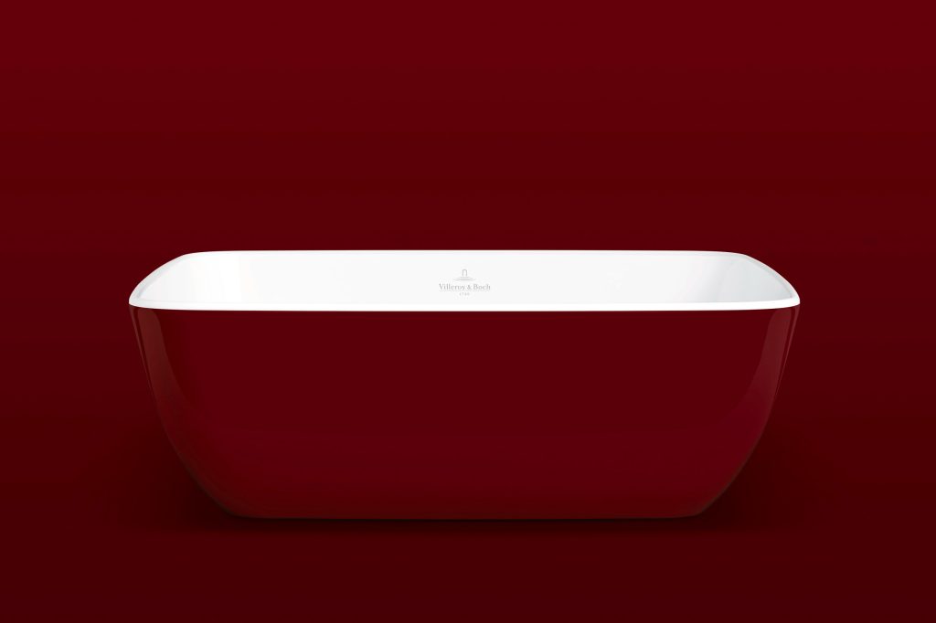 Das bordeauxrote Aufsatzwaschbecken Artis von Villeroy & Boch ist ein echtes Statement im Badezimmer.